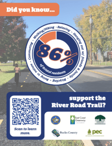 The Pennsylvania Environmental Council, the Heritage Conservancy, the East Coast Greenway Alliance, and consultant Michael Baker International are working to develop a safe, family-friendly public trail for walking, biking, and rolling along River Road from Cedar Avenue to just past the Wawa near Old Route 13 (see map). The River Road Trail is a portion of the East Coast Greenway and will one day connect residents and visitors alike to Bristol Borough, Bensalem, Philadelphia, and all the way from Maine to Florida!