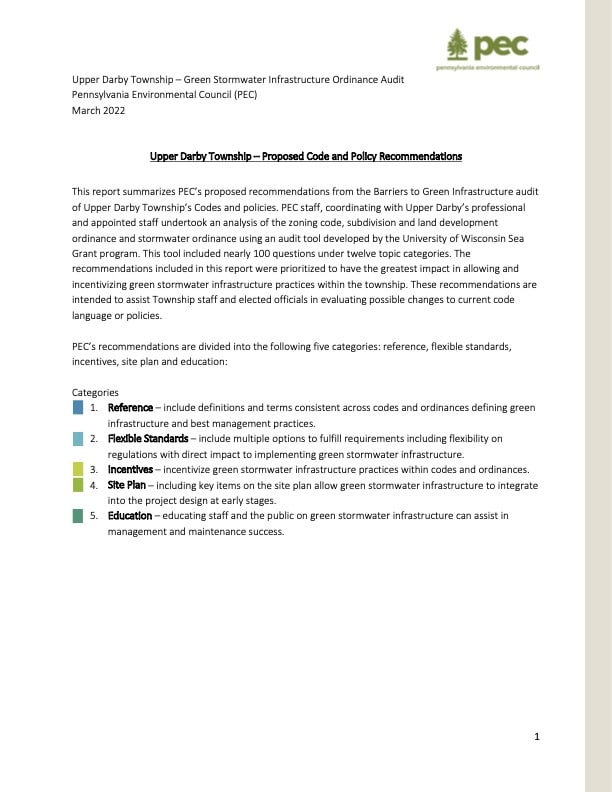 Upper Darby Township – Green Stormwater Infrastructure Ordinance Audit