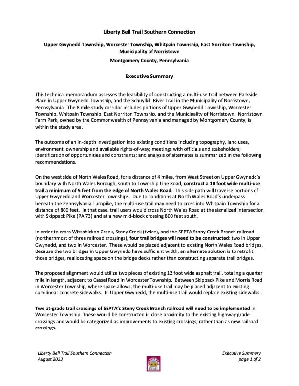 Liberty Bell Trail Southern Connection: Exploratory Study