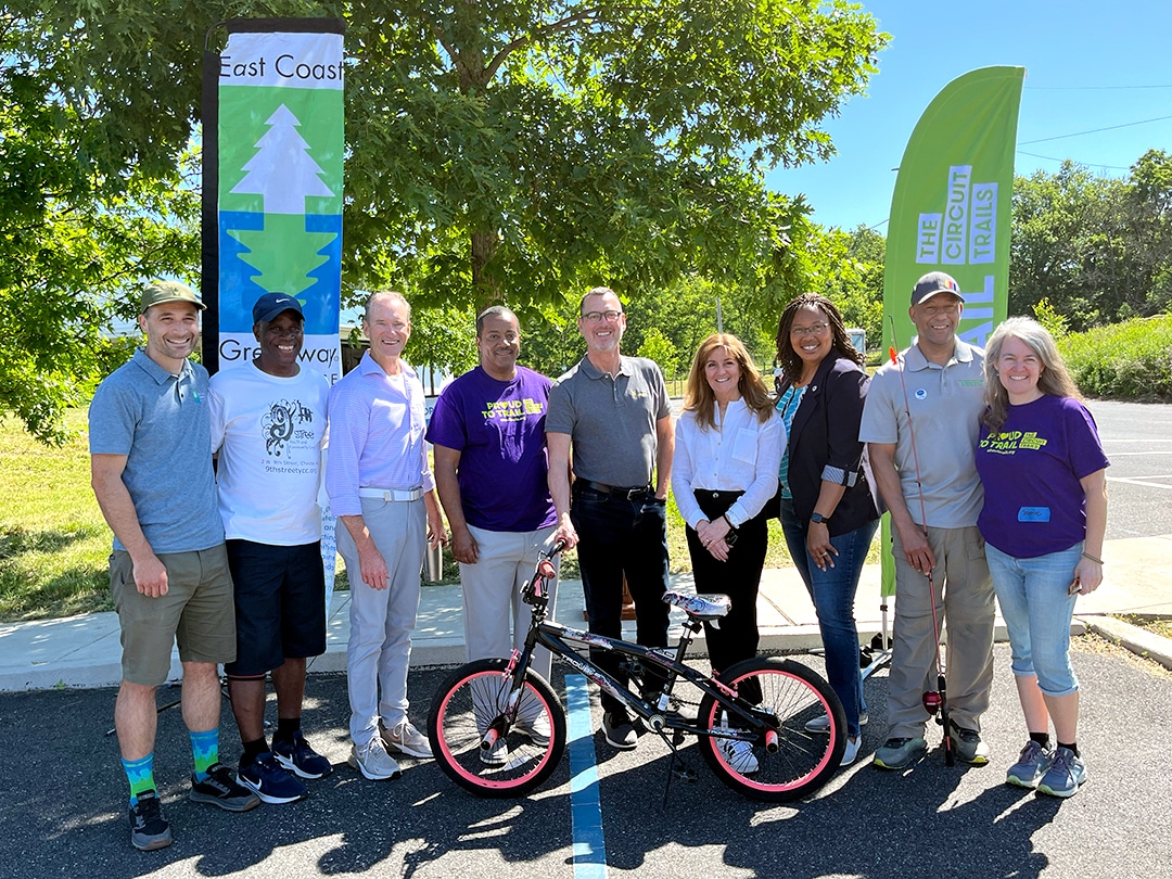 Local, state, and regional leaders celebrated the news at a press conference in Eyre Park in Chester, part of Delaware County. In the background, kids received free bike lessons as part of the fourth Chester Bike Rodeo, an event supported by the Circuit Trails Community Grant Program. Youth Development United, which hosts the event, has provided more than 300 donated-and-refurbished bicycles to neighborhood kids.