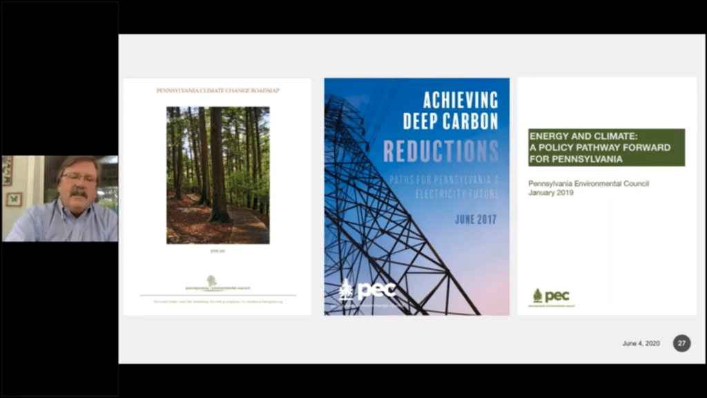 Last week, we helped push the conversation forward on another key recommendation: encouraging technological innovation not only to reduce energy consumption and attendant emissions, but also to capture and store carbon dioxide before it enters the atmosphere. PEC President Davitt Woodwell was one of three panelists featured in a June 5 webinar co-organized by PEC and hosted by the Center for Climate and Energy Solutions (C2ES), discussing the potential of carbon capture, utilization, and storage (CCUS) as part of Pennsylvania’s emerging decarbonization strategy. We encourage anyone interested in the subject to check out the webinar video shared by C2ES.