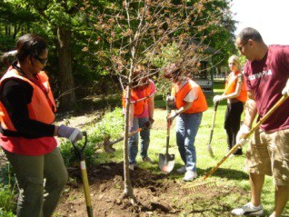 The project, which included planting seven larger trees and 50 seedlings, is an implementation project of the Wyoming Valley Rivers Conservation Plan that was prepared by PEC in 2008. The tree plantings were made possible by funding provided by the Pennsylvania Department of Conservation and Natural Resources. The tree planting project was conducted along the banks of the Huntsville Creek as it flows through the Lands at Hillside Farms. The purpose of the tree planting is to reduce stream bank erosion, improve water quality and to provide wildlife habitat.
