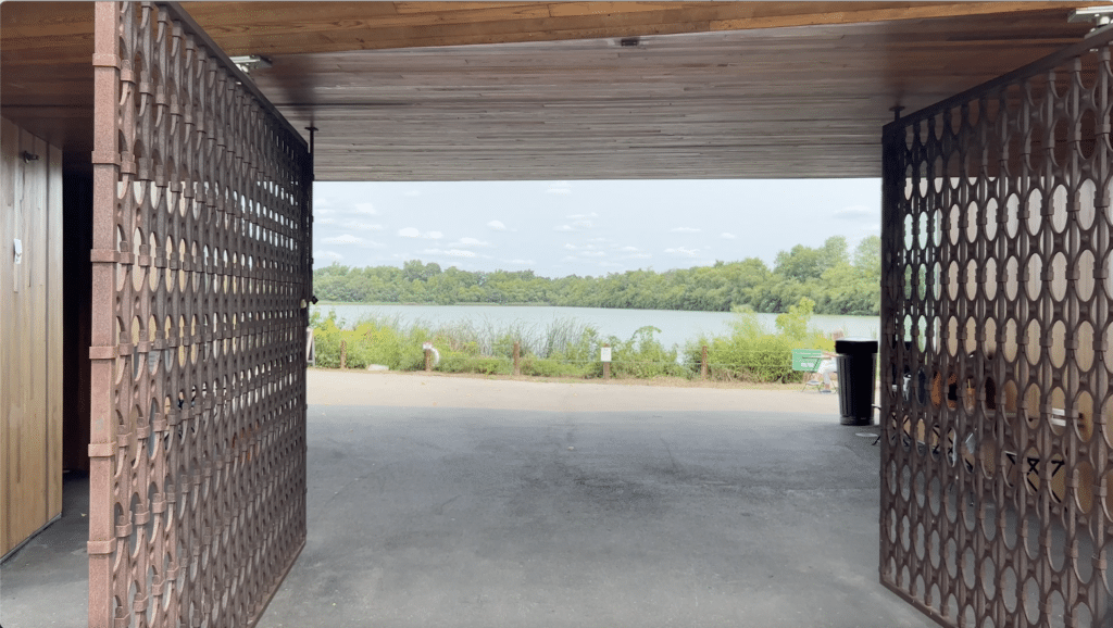 First-time visitors often stop in surprise upon stepping through the gateway, which frames an unexpected vista of open water surrounded by lush vegetation and buzzing with human, avian, and insect activity.