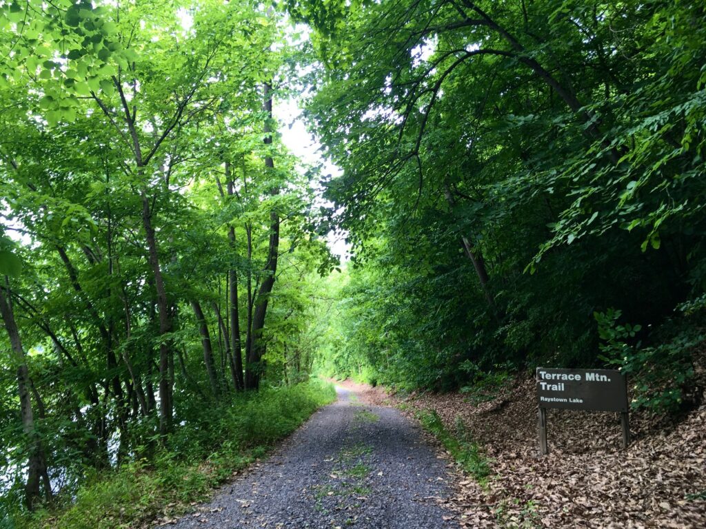 From the parking lot, head across a wooden foot bridge over Trough Creek and begin the first climb up Old Forge Rd. Towards the top, beautiful rock outcroppings line the gated road and on your left, you’ll see some of the hiking trails that transect the Trough Creek Gorge on the western side of the creek. At the end of Old Forge Rd. and the top of the climb, turn right on the paved Little Valley Rd., which will take you southward to intersect with Rt. 994 for a short, windy descent towards Raystown Lake. Just before a bridge over the lake, you’ll make a left at the entrance to Lake Raystown Resort and pass the marina and conference center. Turn left at the guard shack and follow signs for the campground. Just before the campground entrance, you’ll stay left again and begin climbing once more before passing through a gate and entering the Terrace Mountain Trail (TMT).