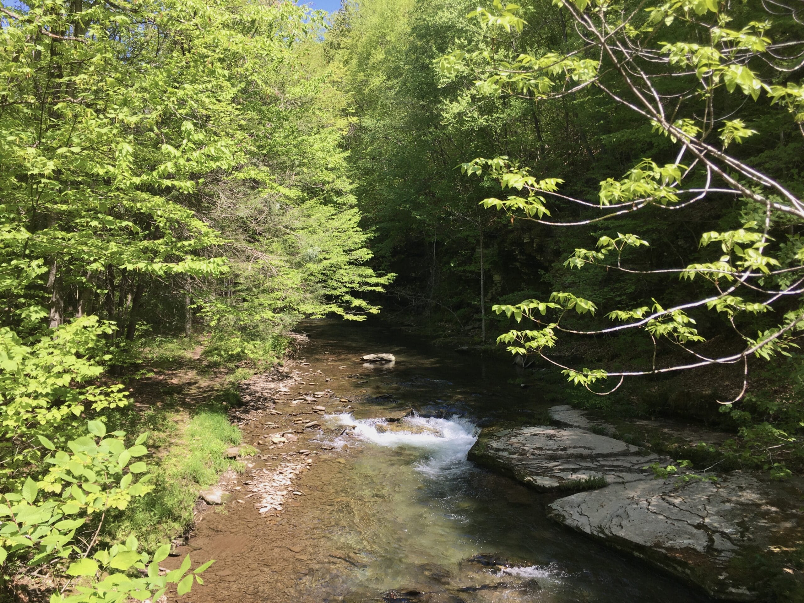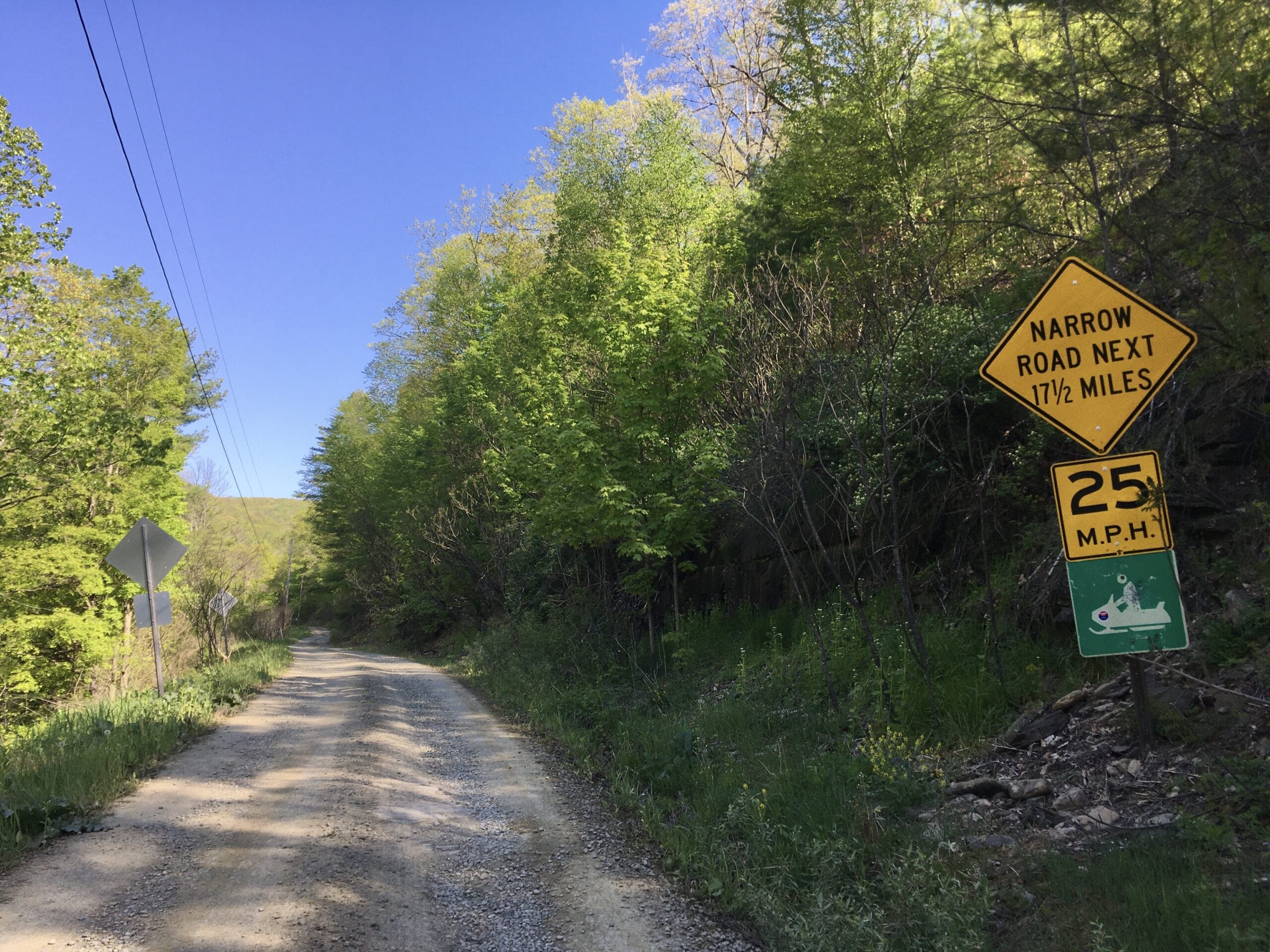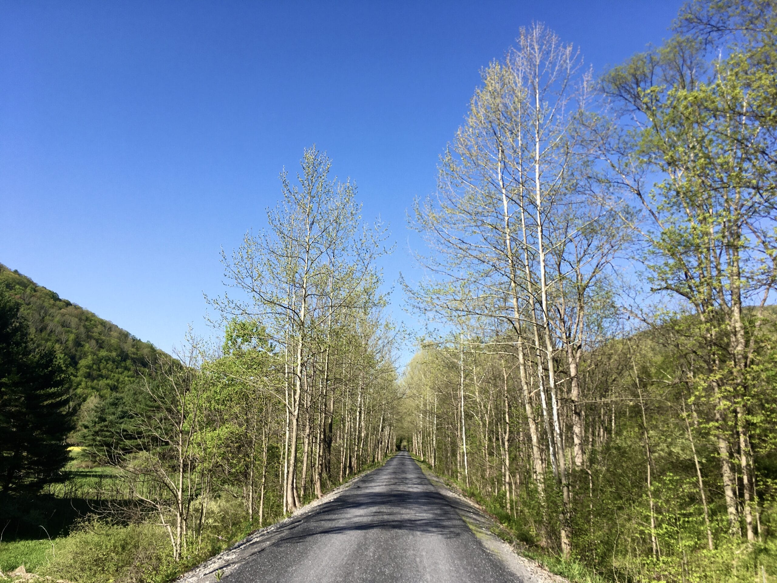 The town doesn’t consist of much except some houses and an access point for paddling Pine Creek and the Pine Creek Rail Trail. The trail entrance is just past the parking lot after crossing the bridge over the river. Turn right and enjoy 5 miles of flat spinning in the valley before hopping off at Cedar Run onto Beulah Land Road (right turn). Make a quick left onto the pavement, and then another right onto Rt. 414. After just over a quarter mile, bear left onto Leetonia Road.