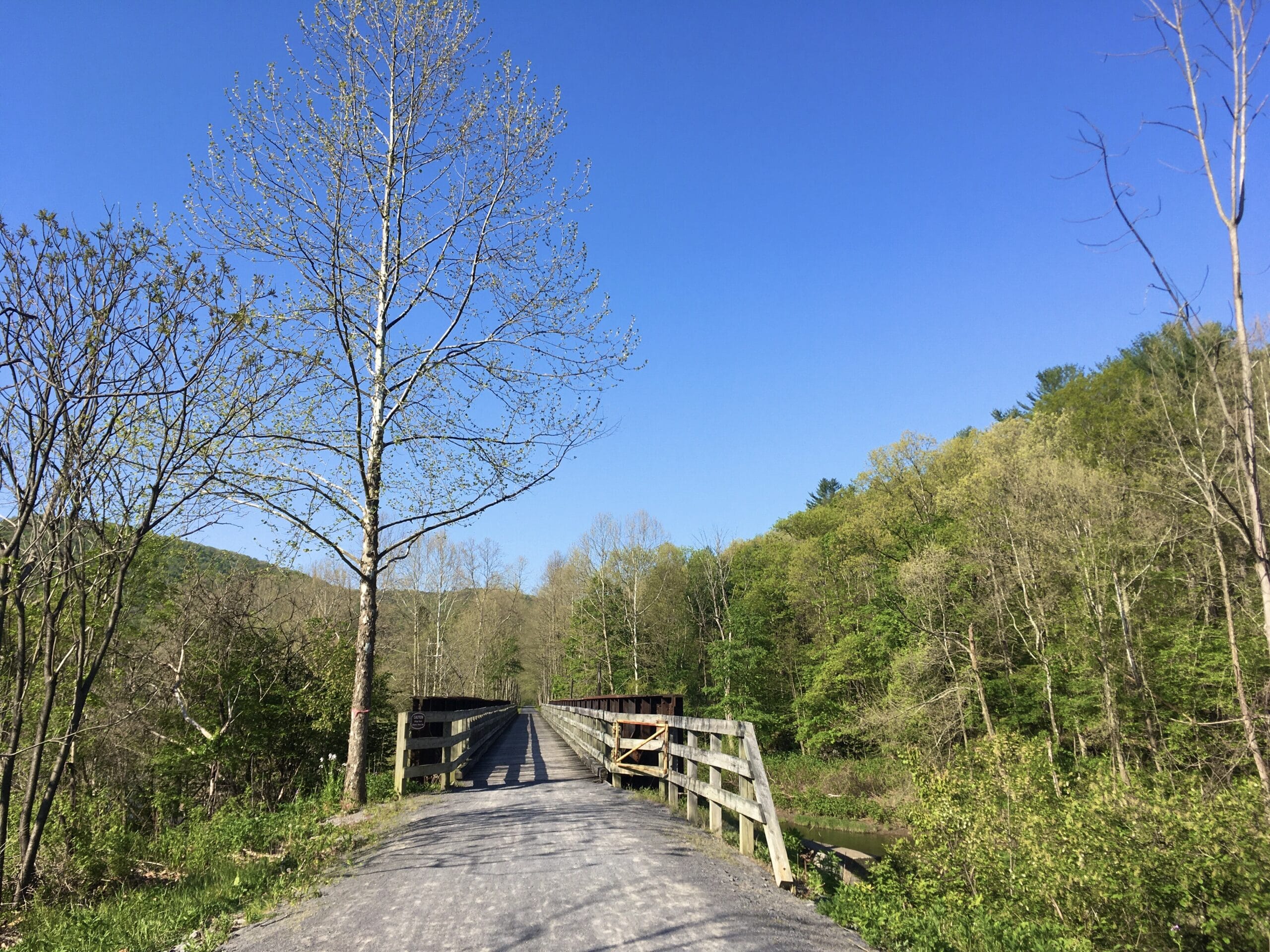 The Pine Creek Rail Trail is 62 miles long, running the entire length of the Pine Creek Gorge. The closest access to Colton Point is Ansonia, just a few miles away, and it’s a great option for an easy pedaling day to go as far as you want. There are also some intersecting back roads on the eastern side of the gorge to create a loop for a second day of riding.