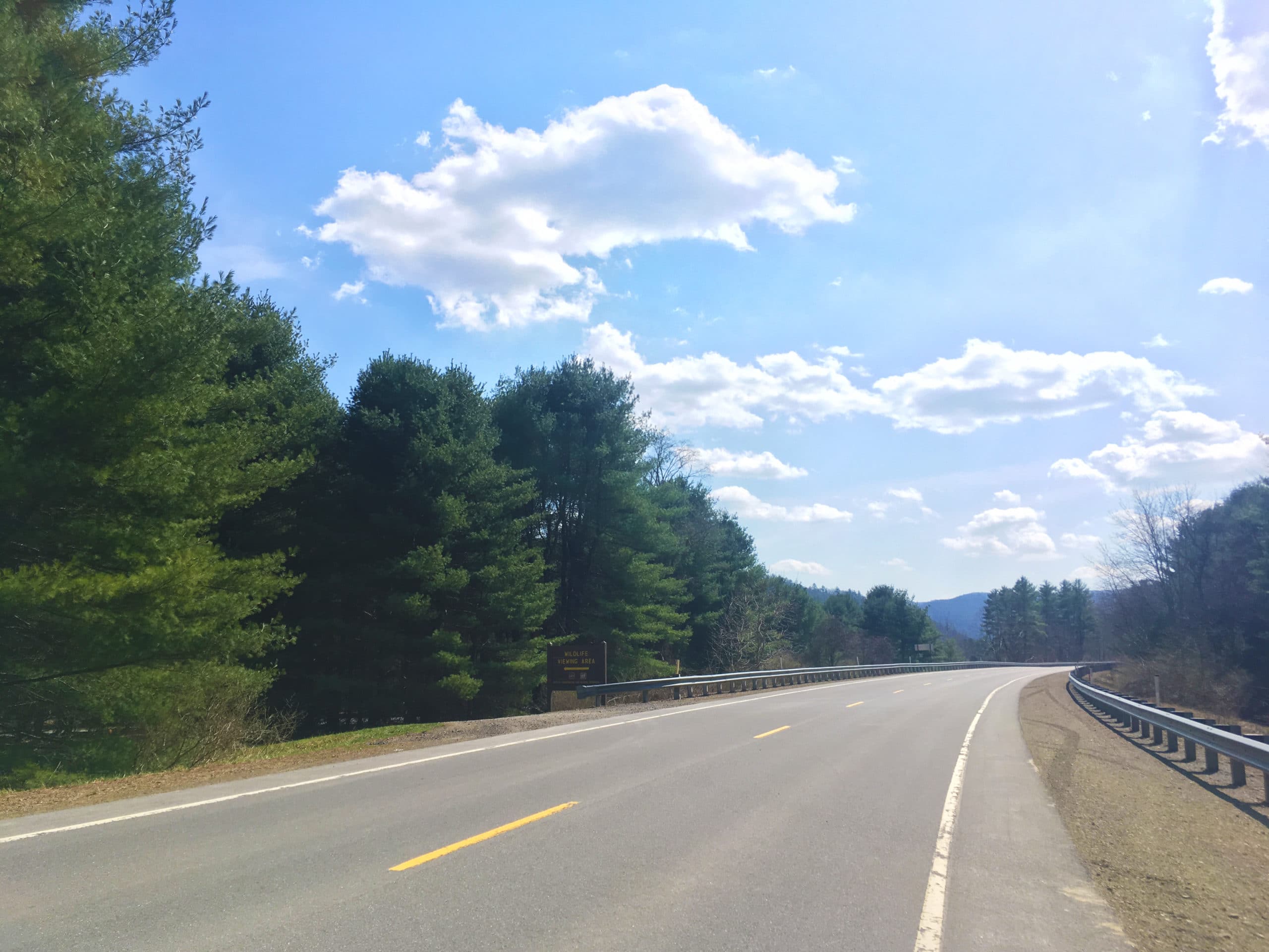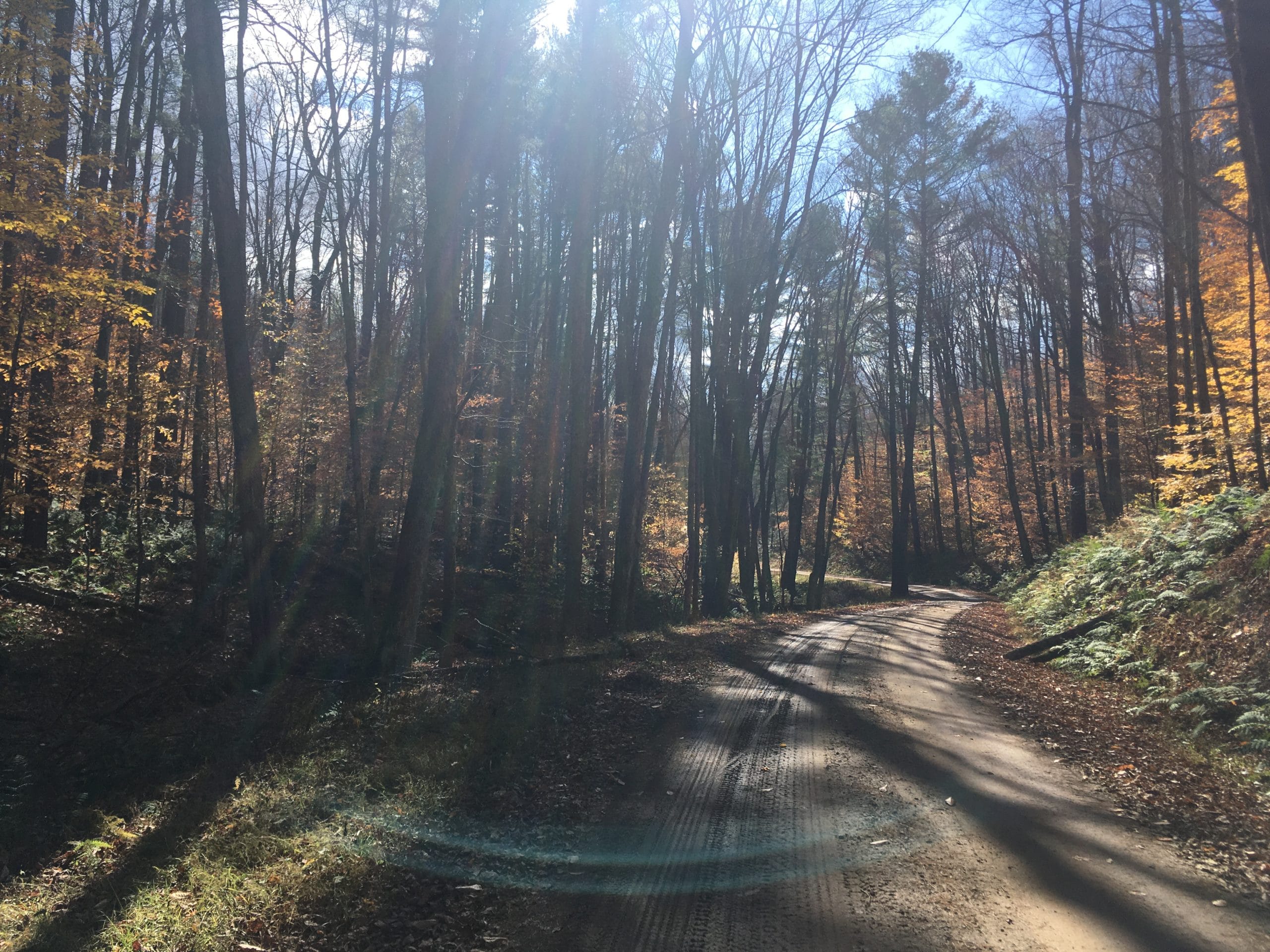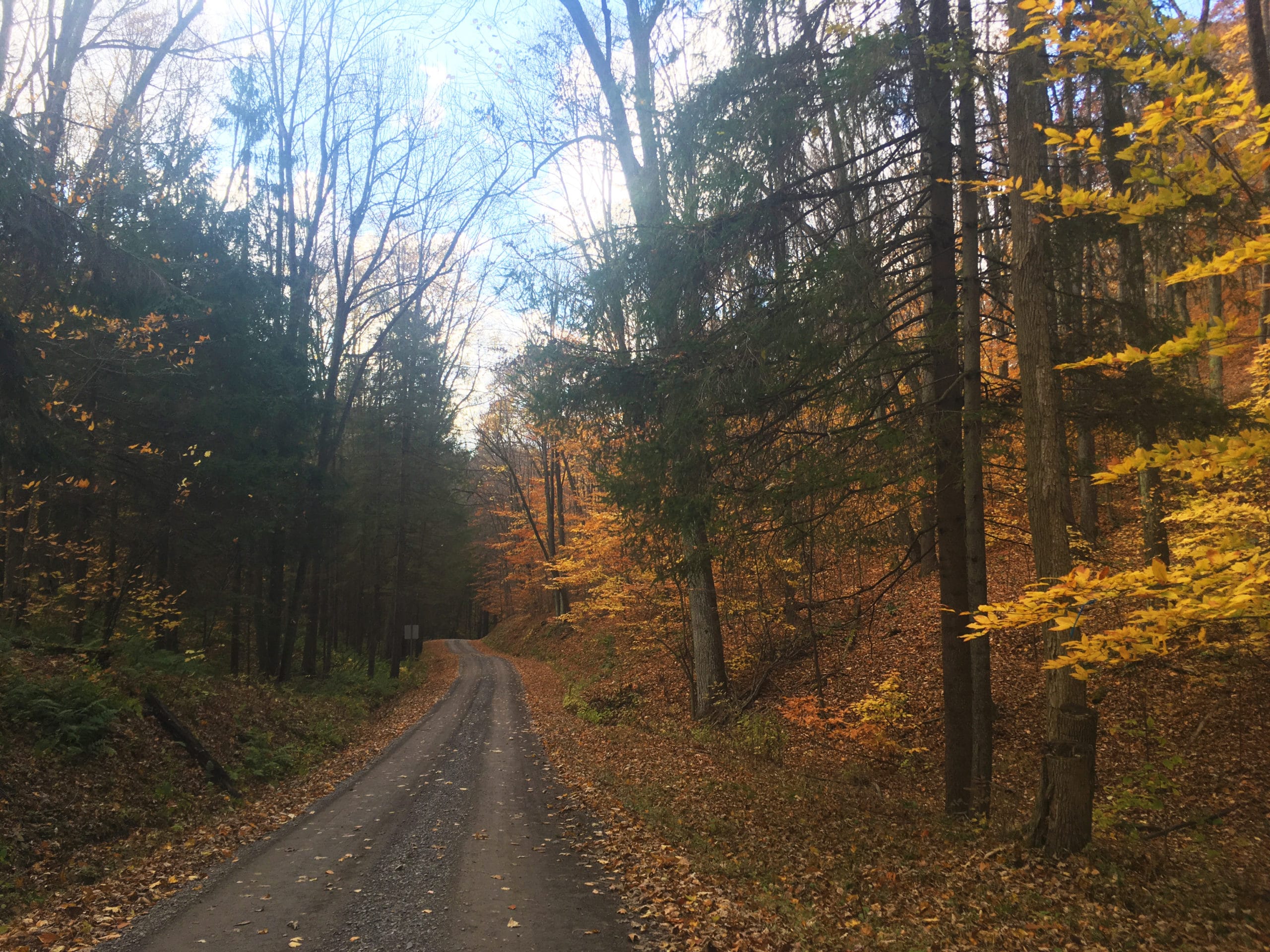 After passing Crooked Run Road on the right, you’ll be on a section of the route that overlaps with a later portion, so you’ll get to ride about five miles in both directions. The scenery is a mix of deciduous forests, evergreens and scrub. Ridge Road forms the border between Elk State Forest and Susquehannock State Forest — the western side of the road is Elk while the eastern side is Susquehannock. In this region, multiple state forests blend together to create a huge swath of public lands.