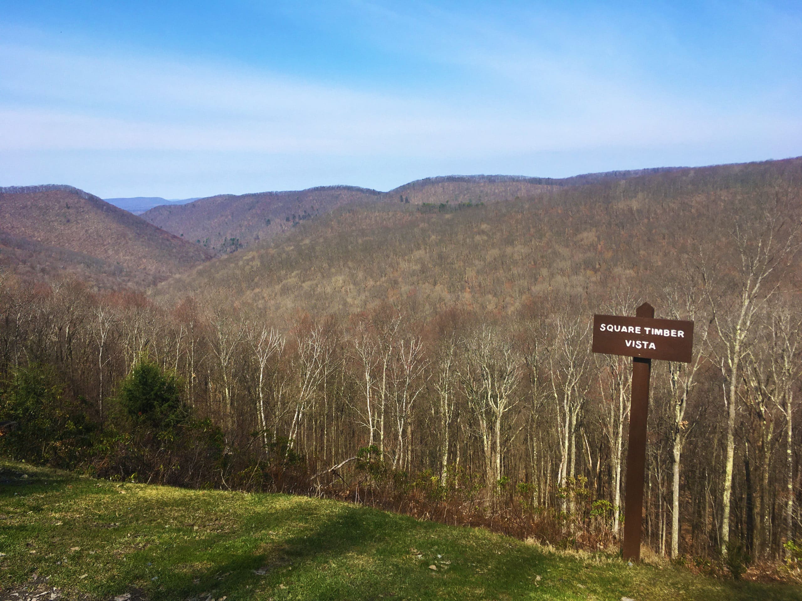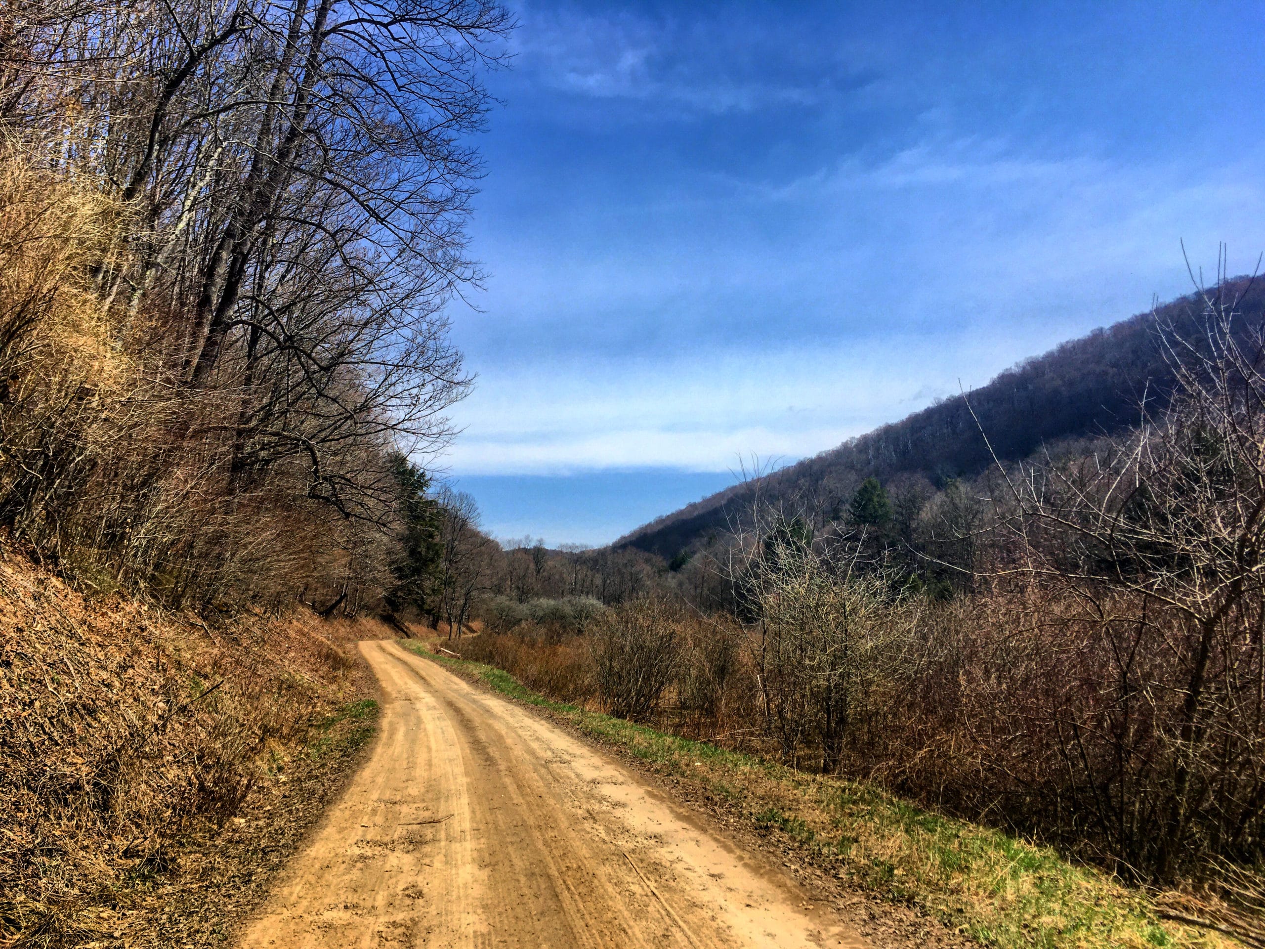 Back up top on Ridge Road, you’ll turn right and start heading north again. Brooks Run Fire Tower is a short detour — just follow the gated road on the right at the Ridge Road intersection. This portion of Ridge Road boasts plenty of vistas per mile, the ones to the west looking out onto the narrow valleys and steep ridges of Square Timber Wild Area. After about another five miles on top of the ridge, it’s time to drop down once again, this time on Whitehead Road. A dog-leg switchback about halfway down is fun to ride and makes for a good photo op spot. At the t-intersection with Hunts Run Road, turn right and, you guess it, begin to climb again.