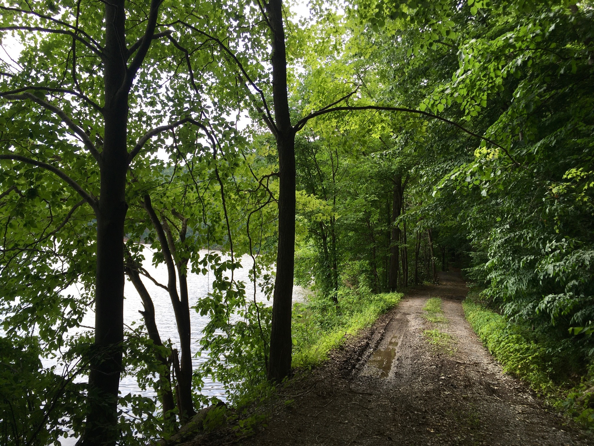 The TMT is a 30-mile long path that runs the length of Raystown Lake and ranges from a gravel road to rugged singletrack at different sections. The section from the Resort southward is all readily passable on any gravel bike, though it is slightly more rugged than a traditional gravel road. The trail undulates from near lake level to partway up Terrace Mountain several times on this 5-mile section, and one of the climbs is particularly brutal. Shift down and just keep spinning, and it will be rewarded with a fun descent and views of the lake.