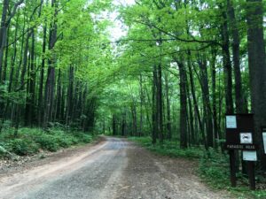At the end of Over There Trail, you’ll pop out on John Bum Rd. and climb just a little more. At the intersection with Fink Rd, the route follows another off-road section known as Horse Knob Fire Trail, which is slightly more technical than the snowmobile trails, though very doable on a gravel bike. If this sounds good to you, make a right on Fink Rd., go through the gate, and then look for the Horse Knob Fire Trail entrance on the left. The habitat on top of Horse Knob is favorable for upland birds such as grouse and turkeys, which you’re likely to see.
