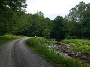 At the bottom of Bunn Mountain, after another very short stretch on Rt. 994, you’ll make a left in the “town” of Newburg on Paradise Rd. It quickly turns to gravel the setting becomes more and more forested. You’ll pass back into Rothrock State Forest and descend back into Trough Creek State Park.