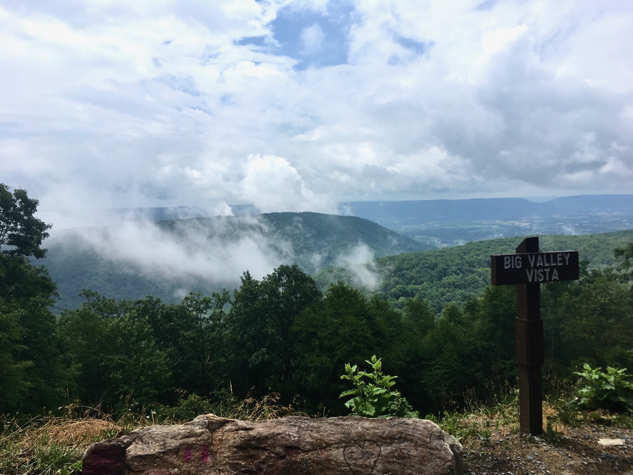 In Weikert, turn right onto White Mountain Rd. and in about another mile, make another right onto Weikert Run Rd. The climb is very gradual until a left turn onto Hoofnagle Rd., when it gets increasingly steeper throughout its ascent. In this section of the forests, the mountains are layered so closely together that there aren’t many vistas — there’s just more mountains. The reward for the Hoofnagle climb is a gradual descent down Hunter Rd. through a cool deciduous forest. At the intersection with Short Mountain Rd., make a right for a quick climb to the top of Short Mountain, then another descent along a moss-lined stream to Snyder-Middleswarth Natural Area.