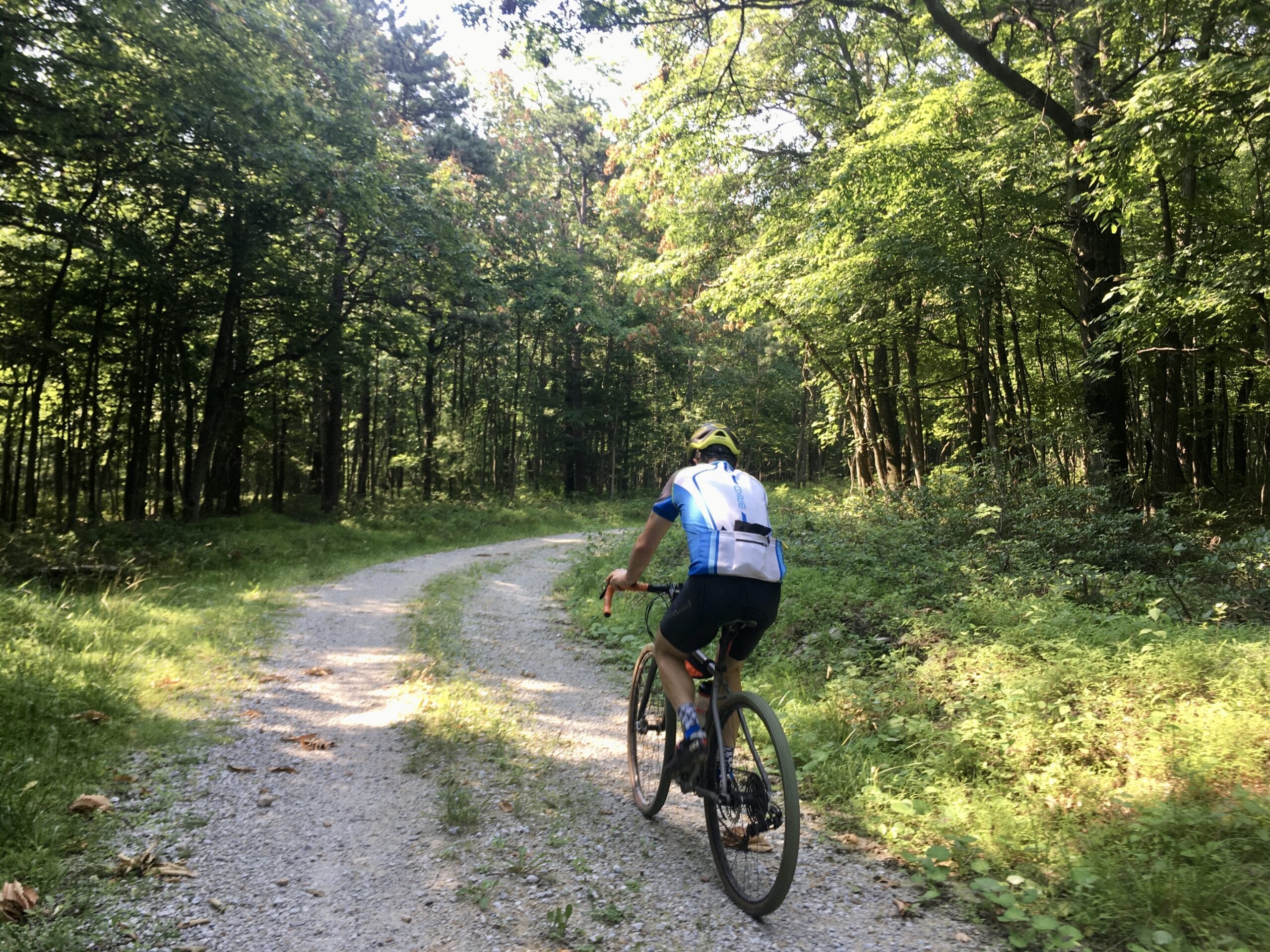 The doubletrack pops out back on Forest Rd., where the route uses Raccoon Run Trail to stay off Rt. 233 for a short stretch. This singletrack has some roots and rocks but is navigable on a gravel bike. The trail is less than half a mile, but if you’ve had enough of the chunk, you can always head right on Forest Rd. and take Rt. 233 to Corl’s Rd. instead. The trail will pop out on the gravel Corl’s Rd., where you’ll stay right and soon be back in familiar territory as Corl’s Rd. intersects with New Baltimore Rd. Retrace your steps for the last mile back to Caledonia State Park.