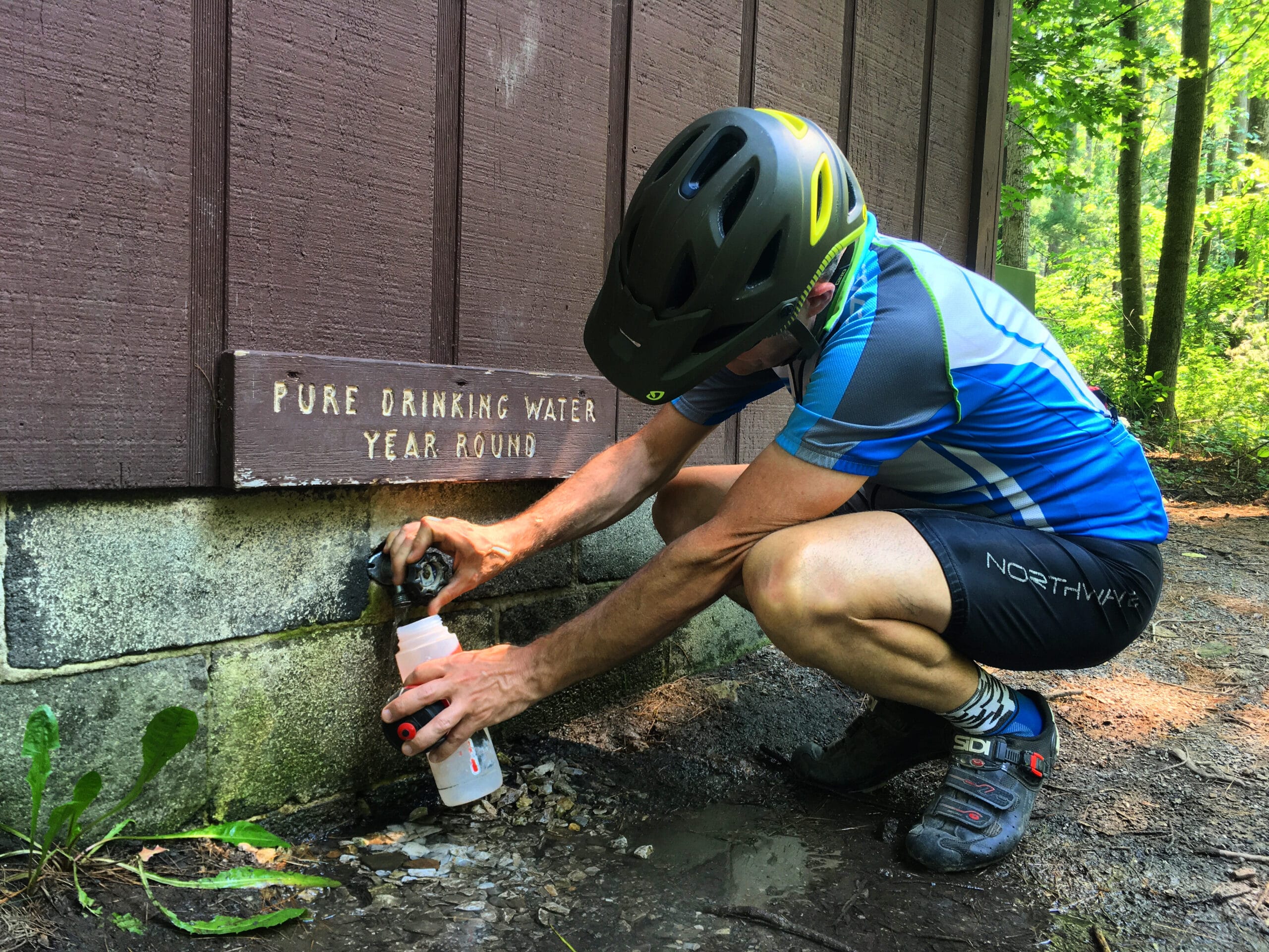 High Rock Rd. descends, climbs and descends again. The soft shale surface sucks energy on the climby sections, but the four-mile descent down to Old Forge Picnic Area is a well-earned reward. Old Forge features a springhouse at the back of the gravel parking lot (all the way on the left as you’re passing through the picnic area) with a spigot on the side. Fill up your water here to prepare for the next couple big climbs and slow-going chunky sections to come.