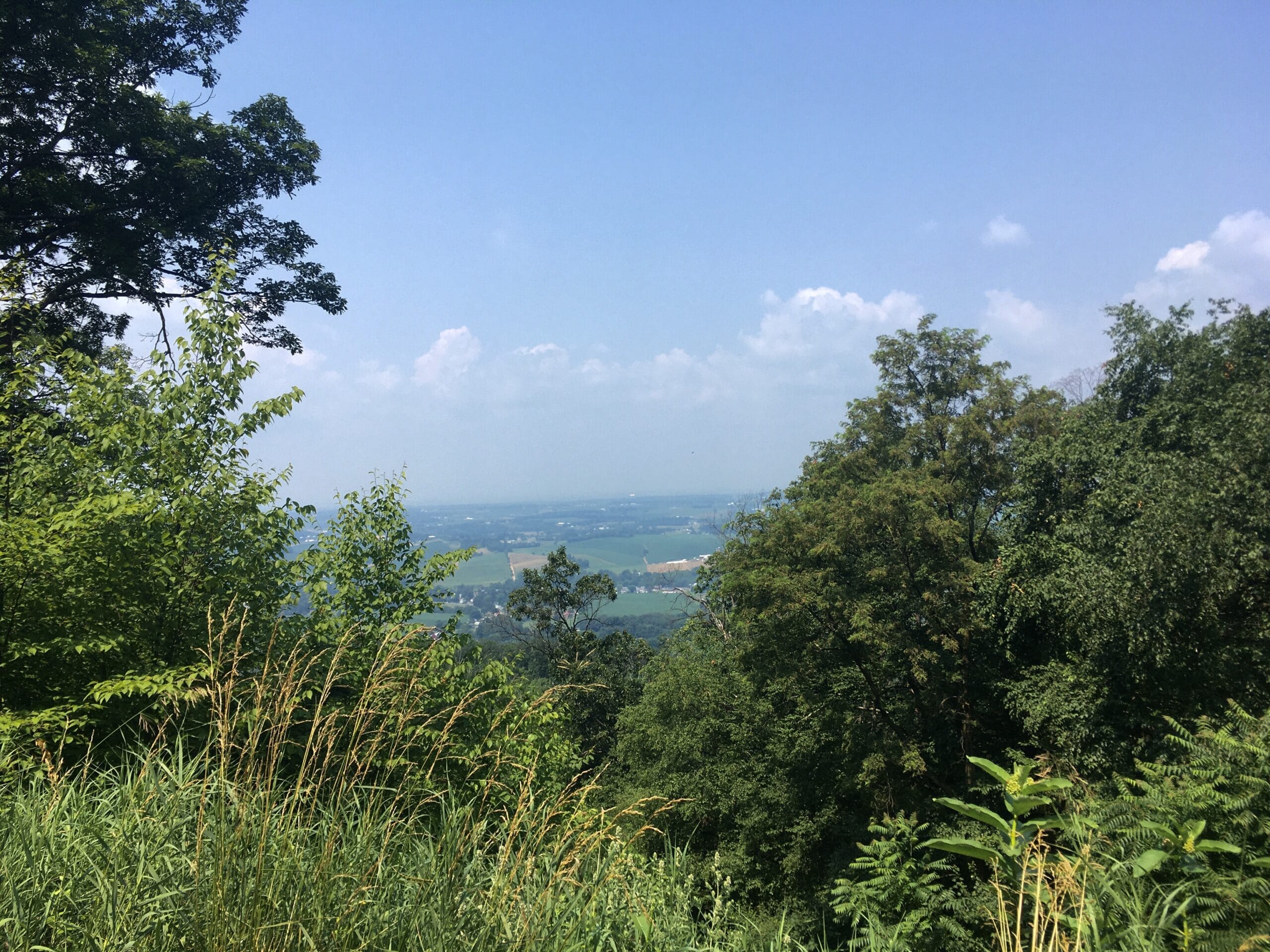 Wirt Rd. climbs (of course) about 800 feet over 3.5 miles, keeping a fairly consistent 4-5% grade before leveling out ahead of a final kicker at the top. It follows the valley of Vineyard Run as it winds to the top of Sandy Ridge. At the 4-way intersection at the top, stay left on Oak Rd., which rolls for a while around Quincy Mountain before descending to Mont Alto State Park. There are a few sections where large, flat rocks were used to mitigate erosion issues on this gravel road, so stay alert to avoid a surprising change of surface. There is a vista about halfway down the descent that offers farmland views towards the west and the ridges of Tuscarora State Forest in the distance.